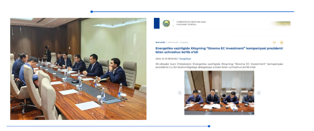 Zuo Dayong, Director of the Marketing Department and Chairman of the Investment Company of Sinoma Energy Conservation, Ma Jiachen, Deputy director of the Investment Department of the Investment Company, Pei Chao, and staff in Uzbekistan accompanied them to participate in the above-mentioned activities.