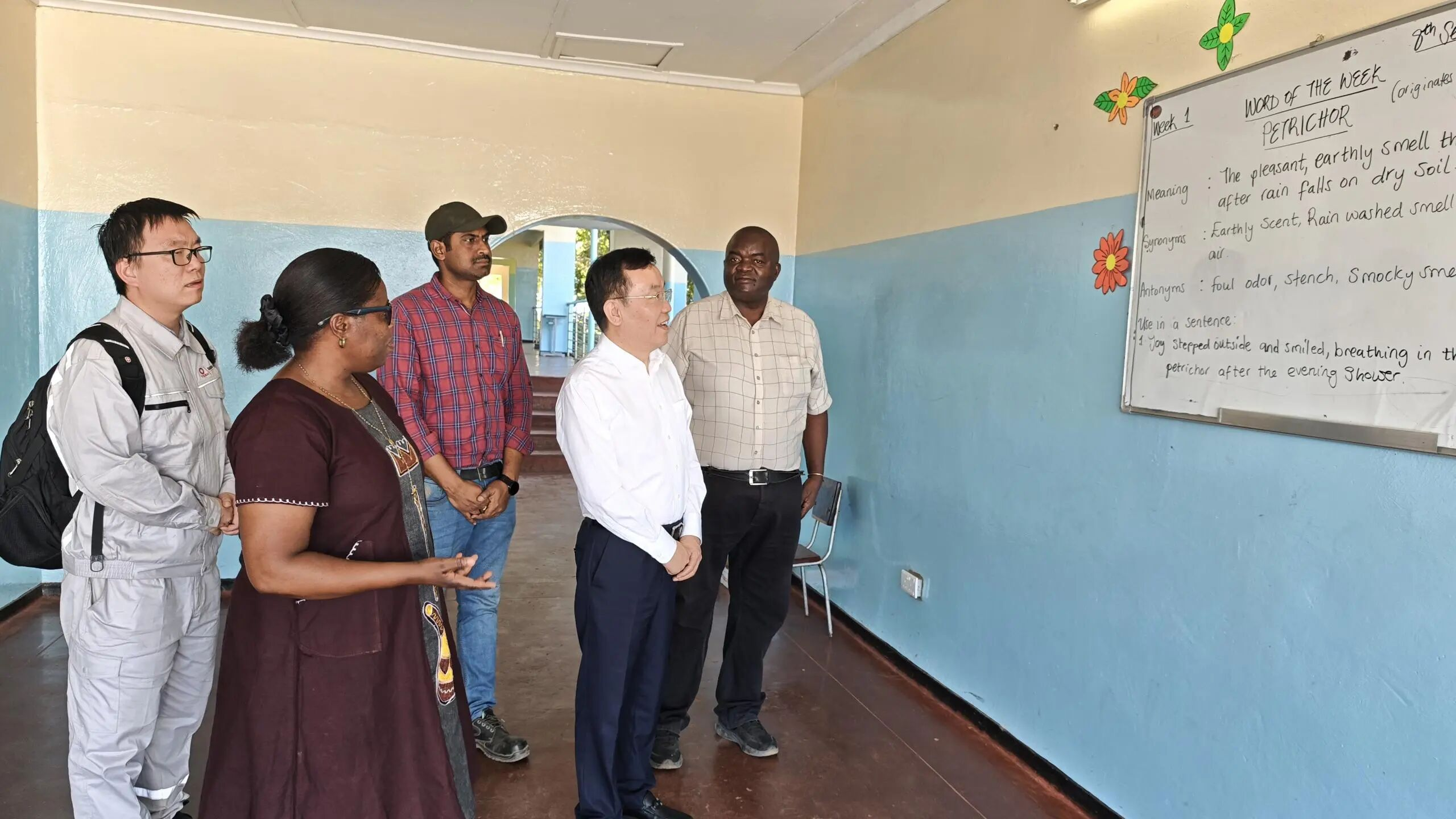 During the visit to Maamba Private Primary School, the school principal briefed Meng Qinglin on the school's construction, curriculum development, and other aspects. Meng Qinglin noted that China-Africa friendship has a long history, and Sinoma Energy Conservation Ltd. will consistently adhere to the "Three Principles" of win-win cooperation: contributing to the local economy, collaborating with local enterprises, and fostering friendly relations with local people. The company integrates its development deeply into Zambia's local economy and social development, demonstrating the responsibility of Chinese enterprises through concrete actions. He also expressed hope that students would gain a better understanding of China and Chinese culture through interactions with Chinese enterprises.